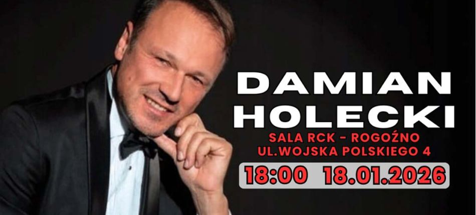 Rogozińskie Centrum Kultury zaprasza dziś na koncert Damiana Holeckiego – popularnego wokalisty i kompozytora, znanego z melodyjnych utworów utrzymanych w popowym stylu z elementami ballady.