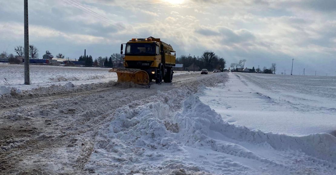 Zalegający na jezdni śnieg utrudniał przejazd szczególnie dużym pojazdom.