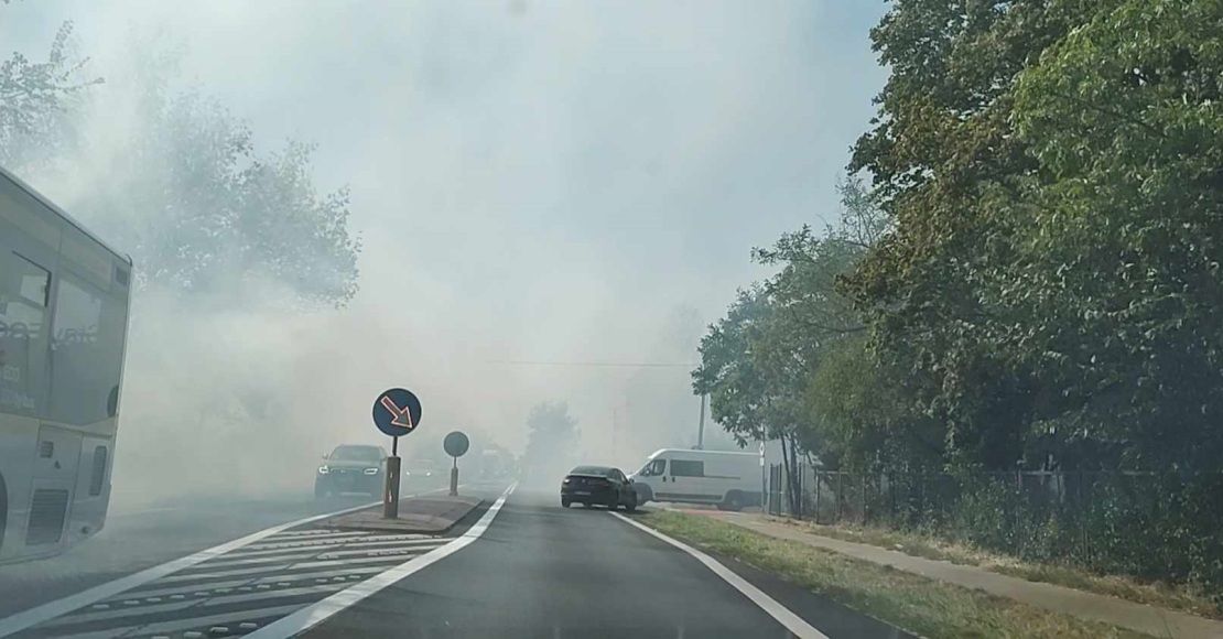 Zadymienie na DK11 w Kowanówku - fot. eoborniki.pl