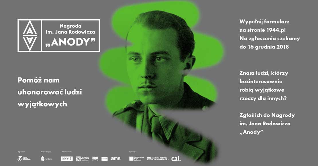 Trwa właśnie VIII edycja Nagrody im. Jana Rodowicza „Anody”. Zwycięzcy wyłonieni zostaną w trzech kategoriach: (1) za całokształt dokonań oraz godną naśladowania postawę życiową, (2) za wyróżniającą się akcję lub inicjatywę społeczną zakończoną sukcesem, (3) za wyjątkowy czyn. Formularz zgłoszeniowy dostępny jest na stronie internetowej www.1944.pl i www.anoda.org. Wypełniony formularz należy dostarczyć do Muzeum Powstania Warszawskiego (ul. Grzybowska 79, 00-844 Warszawa). Zgłoszenia przyjmowane będą do 16 grudnia 2018 roku.