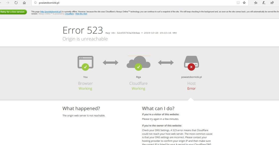 w związku z tymczasowym brakiem dostępu do niektórych usług informatycznych świadczonych przez Starostwo Powiatowe w Obornikach, w szczególności związanych z procesami udostępniania danych geodezyjnych, informuję, iż przyczyną zaistniałych komplikacji jest elektroniczne uszkodzenie macierzy dyskowej.