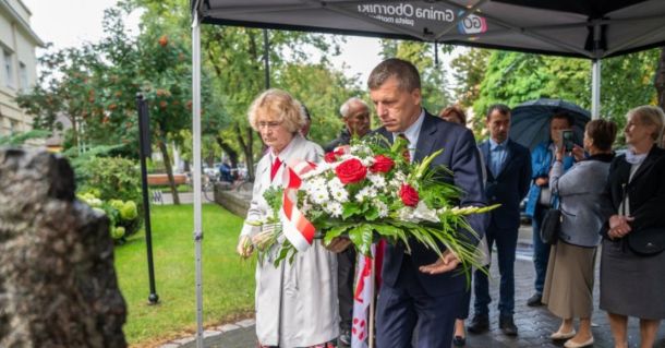 Wrz 1, 2020 81. rocznica wybuchu II Wojny Światowej Burmistrz Obornik Tomasz Szrama oraz Poseł na Sejm RP Jakub Rutnicki złożyli kwiaty pod Pomnikiem Niepodległości.