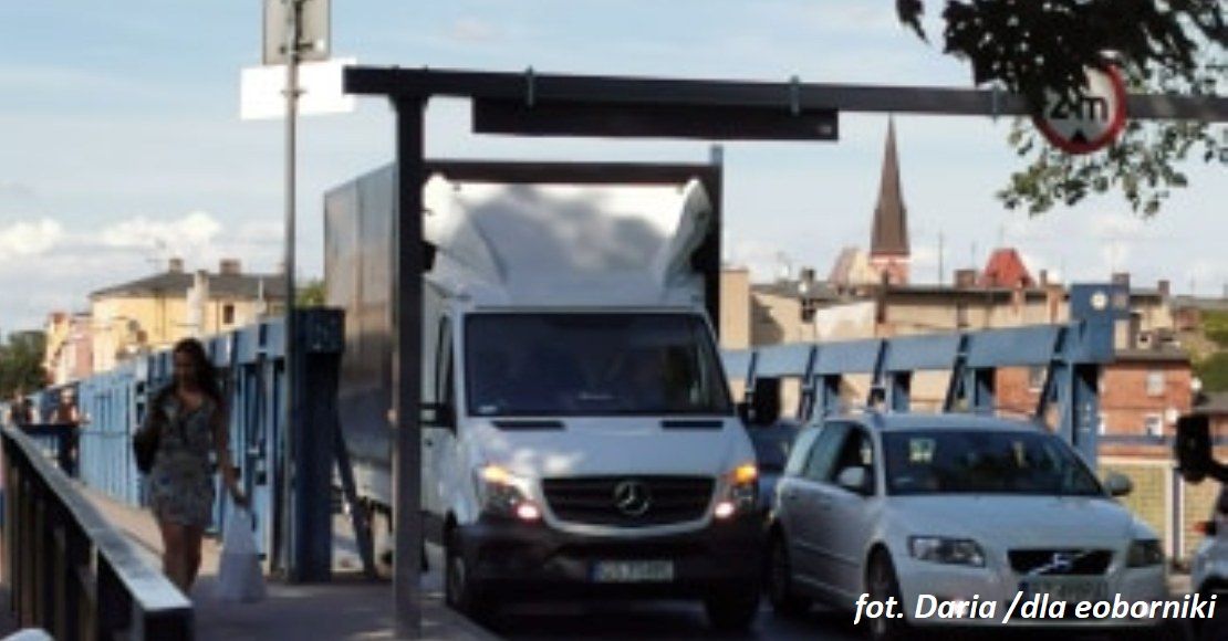 Wcześniej informowaliśmy o utrudnieniach na małej przeprawie przez Wartę w Obornikach. Na szczęście kierowca zdołała przejechać pod bramownicą.
