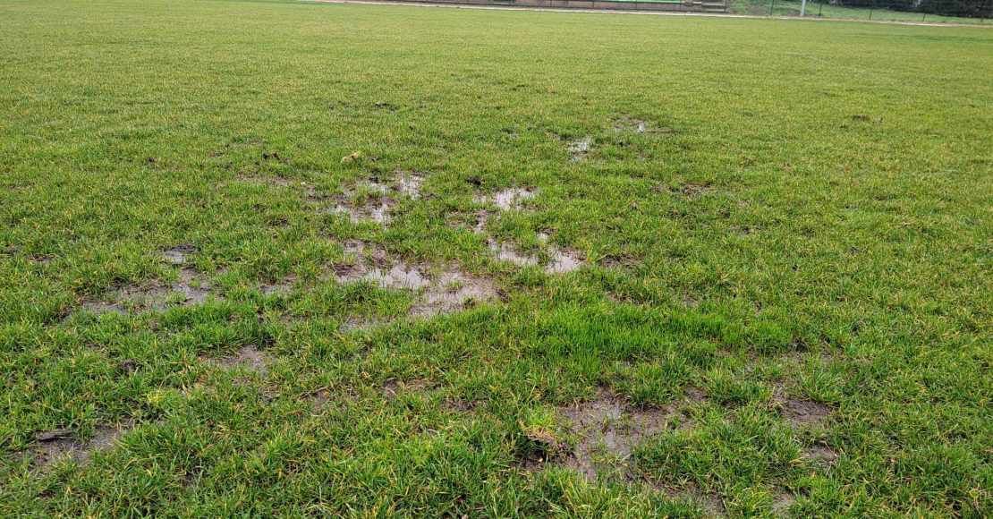 Kolejne opady deszczu pogarszają stan murawy na stadionie przy ul. Objezierskiej w Obornikach.