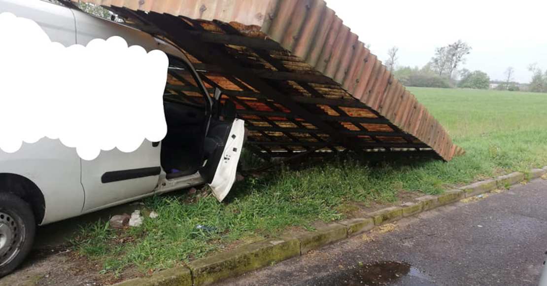 W wyniku zderzenia pojazdów w Wiardunkach jedno z nich rozbiło wiatę przystankową.