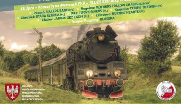 13 lipca przez nasz region przejedzie Blues Express. Zatrzyma się na chwilę w Obornikach, ale dopiero na peronach w Rogoźnie rozbrzmiewać będzie blues na specjalnie przygotowanej scenie.