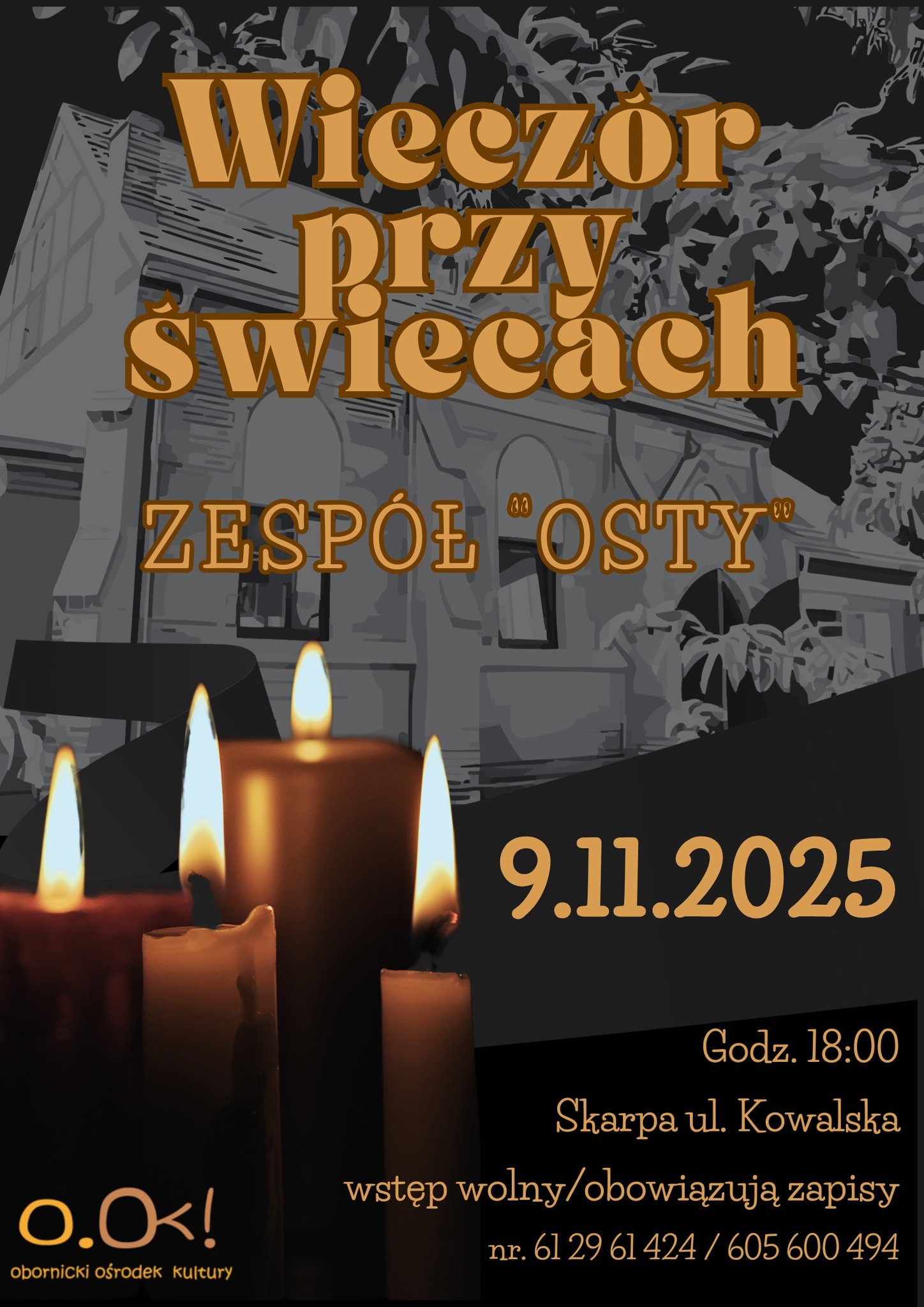 Jesienny wieczór, blask świec i muzyka na żywo – czego chcieć więcej? Dziś, 9 listopada 2025 r. o godz. 18:00 na Skarpie przy ul. Kowalskiej w Obornikach zagra zespół Osty.