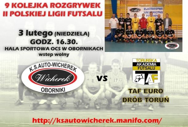 Niezwykle atrakcyjnie zapowiada się dzisiejsze popołudnie dla sympatyków futsalu. W Hali OCS w Obornikach dojdzie do bardzo ciekawego spotkania, w którym wicelider KS Auto Wicherek gościł będzie lidera z Torunia!