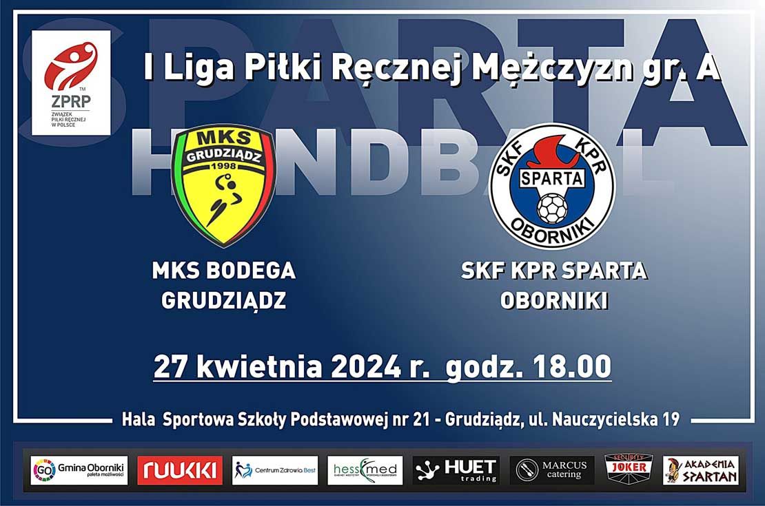 Piłkarze ręczni Sparty Oborniki w sobotę 27.04.2024, jadą walczyć o punkty do Grudziądza.
