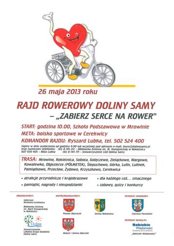 "Zabierz Serce na Rower" - pod takim hasłem organizowany jest rajd rowerowy Doliną Samy. Odbędzie się on w najbliższą niedzielę, tj. 26 maja.
