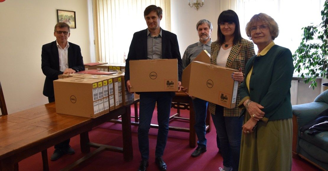Starosta Zofia Kotecka oraz Wicestarosta Waldemar Cyranek przekazali dyrektorom szkół powiatowych laptopy, które zagwarantują uczniom i nauczycielom możliwość uczestnictwa w zajęciach prowadzonych w ramach zdalnej edukacji.
