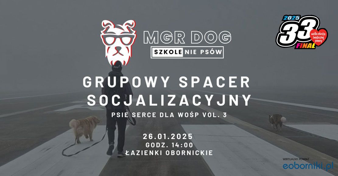 Spacer jest częścią już 3 edycji wydarzenia Psie Serce dla WOŚP. Spacer socjalizacyjny to doskonała okazja do rozwijania kompetencji społecznych psiaków, dlatego zachęcamy Was do uważnego obserwowania swoich psów. Trasa spaceru to ok. 3 km w lesie za Azorkiem w Obornikach! Jest to część wydarzenia PSIE SERCE, które rozpocznie się na obornickich Łazienkach, 26.01.2025 o godzinie 13:00.