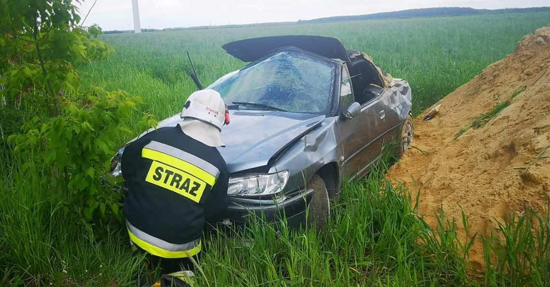 Zdarzenie miało miejsce 23 maja ok. godz. 13:30. Kierowca samochodu oosbowego prawdopodobnie stracił panowanie nad kierownicą. W wyniku czego auto wjechało do rowu i dachował. Kobieta doznała lekkich obrażeń. Mężczyznę znaleziono w zbożu poza samochodem. W cięzkim stanie został przetransportowany przez Lotnicze Pogotowie Ratunkowe do szpitala.