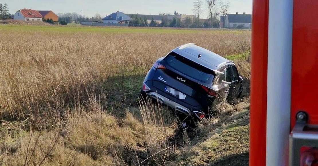 Nieuwaga kierowcy samochodu dostawczego spowodowała, że auto osobowe marki Kia wpadło do rowu. Zdarzenie miało miejsce w Ocieszynie.