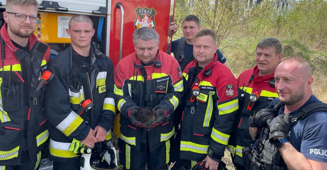 Podczas gaszenia nieużytków strażacy z OSP Rogoźno uchronili przed żywiołem jeża.