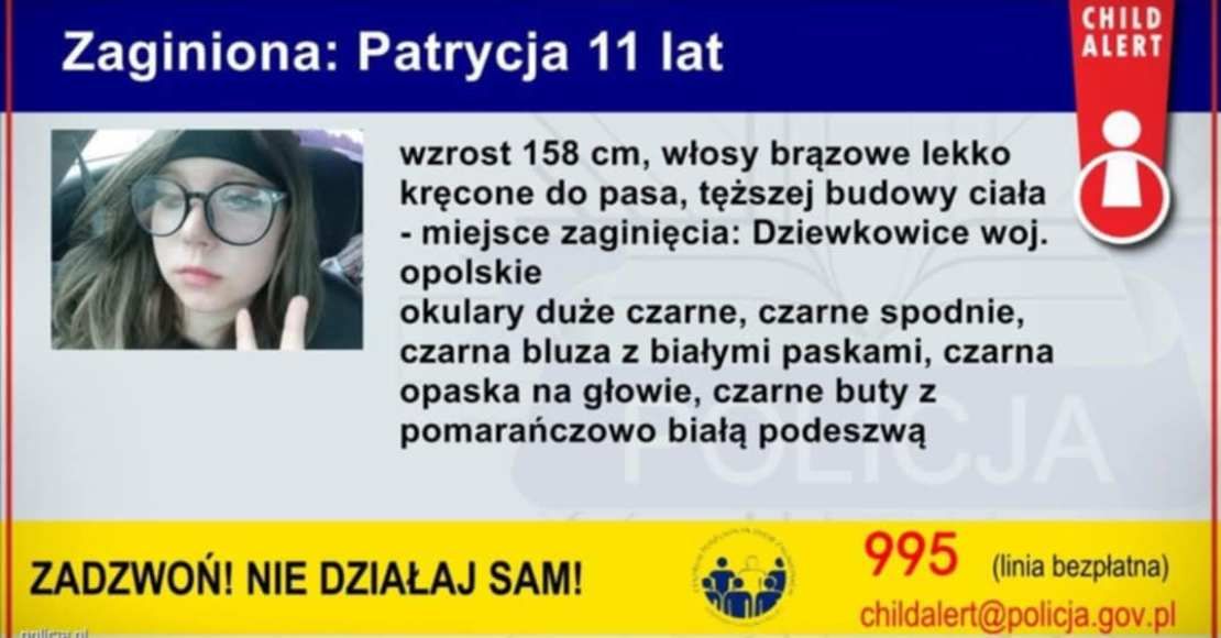 Zaginęła 11-letnia Patrycja Głowania! Policja apeluje o pomoc