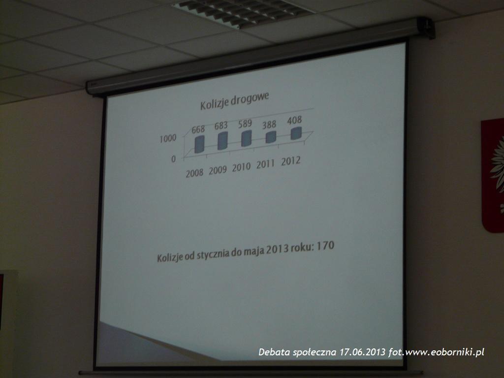 Prowadząca spotkanie Urszula Bak najpierw przywitała zebranych gości a następnie przekazała głos Komendantowi Powiatowemu Policji Wojciechowi Spychale. Przedstawił on po krótce statystyki różnych zdarzeń na terenie Powiatu porównując dane z pierwszych pięciu miesięcy 2013r. z poprzednimi latami. Starosta Adam Olejnik poprosił o porównanie tych danych z innymi powiatami. Tutaj nie można dostrzec wyraźnej przewagi w jakichkolwiek statystykach naszego Powiatu - mówił komendant. Wpisujemy się w średnią i różnice na korzyść lub niekorzyść są niewielkie. Jest jednak coś co wyróżnia nasz Powiat od innych obszarów. Mianowicie chodzi o ilość wyjazdów do wezwań, która jest kilkukrotnie wyższa od średniej całego województwa wielkopolskiego. Policji jednak nie jest znany powód tak ogromnej dysproporcji.