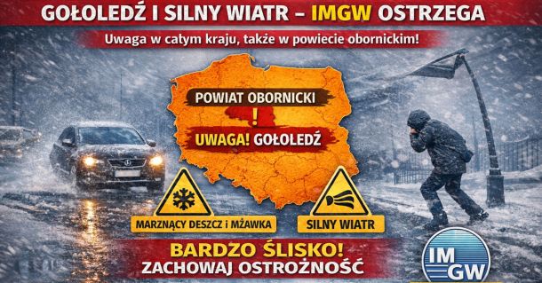 IMGW wydał ostrzeżenie pierwszego stopnia dla regionu obornickiego. Od 26 grudnia od godz. 13:00 do 27 grudnia wieczorem mogą występować marznące opady deszczu i mżawki powodujące gołoledź.