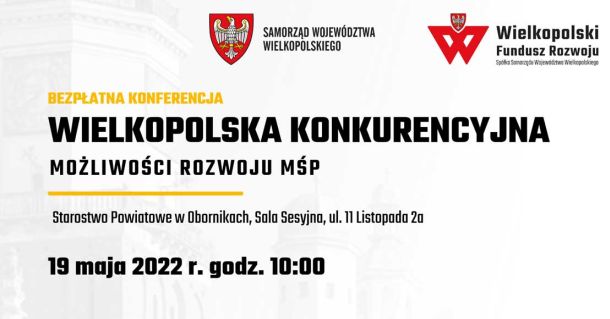 W czwartek 19 maja 2022, o godz. 10.00 w Starostwie Powiatowym w Obornikach odbędzie się konferencja z cyklu „Wielkopolska konkurencyjna. Możliwości rozwoju MŚP”.