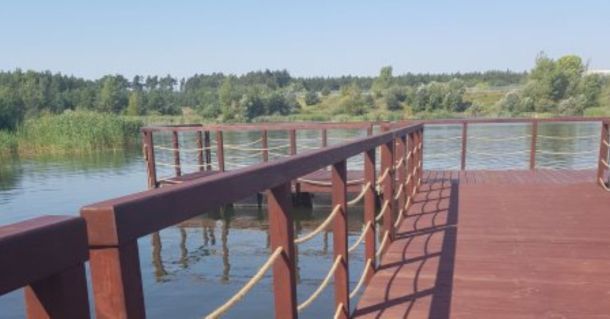 Pomost drewniany na pływakach jest doskonałym uzupełnieniem kąpieliska, które w ostatnim, z racji upalnej pogody, przeżywa prawdziwe oblężenie.
