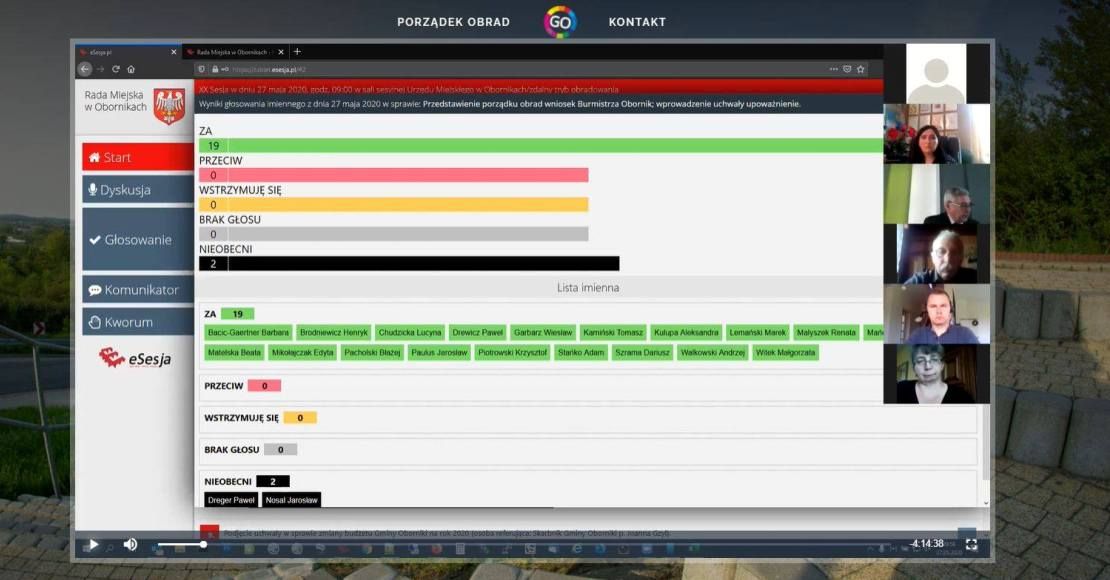W środę, 27 maja odbyła się sesja Rady Miejskiej w Obornikach. Ze względu na trwającą pandemię radni spotkali się zdalnie. System internetowych połączeń nie zawiódł i sprawnie przeprowadzono wszystkie, zaplanowane głosowania. Nie zabrakło też czasu na dyskusje radnych i pytania kierowane do burmistrza.