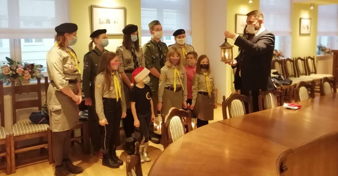 Harcerze i zuchy dostarczyli do Urzędu Miejskiego w Obornikach Betlejemskie Światełko Pokoju.