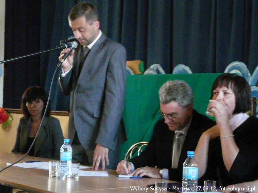 W przeprowadzonych w dniu dzisiejszym (27.08.2012) dodatkowych wyborach na Sołtysa Maniewa najwięcej głosów uzyskała Pani Maria Garczewska (63 głosy). Jej konkurentami byli Andrzej Walkowski (35 głosów) i Krzysztof Frąckowiak (17 głosów).