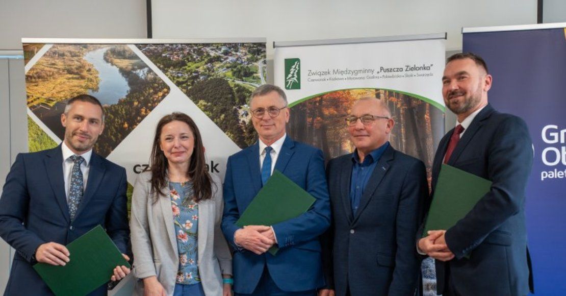 Przedstawiciele Związku Międzygminnego Puszcza Zielonka: Przewodniczący Zarządu ZMPZ Marian Szkudlarek i Członek Zarządu ZMPZ Marcin Wojtkowiak oraz Burmistrz Obornik Tomasz Szrama podpisali list intencyjny ws. przebudowy drogi wojewódzkiej nr 187.