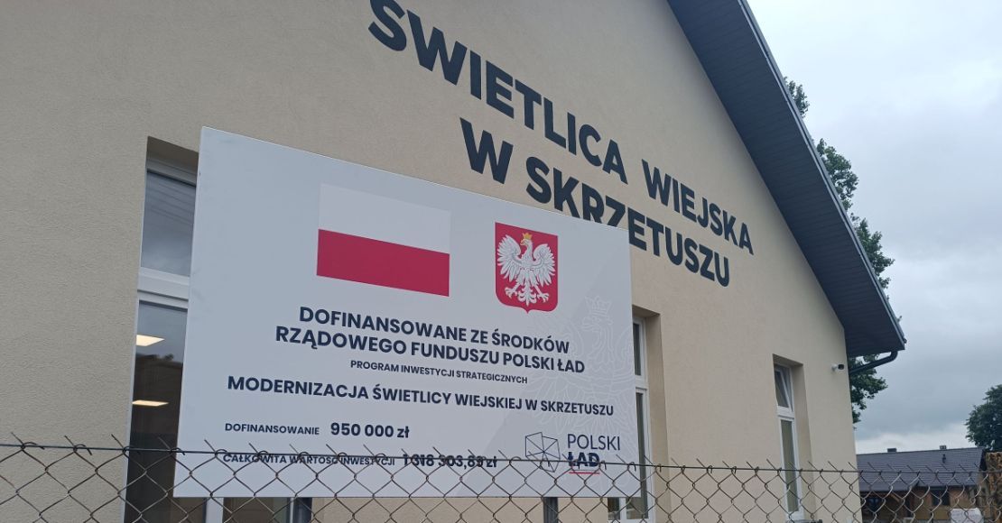 Zadanie obejmowało modernizację świetlicy wiejskiej w Skrzetuszu, w tym m.in.: rozbiórkę ścian II kondygnacji świetlicy wiejskiej, demontaż istniejącego dachu i montaż nowego z blachodachówki, wymianę okien, wykonanie nowych posadzek, rozbudowę świetlicy o sanitariaty oraz przebudowę pomieszczeń socjalnych. Budynek został ocieplony i pomalowany. Wykonano ponadto prace branży elektrycznej i sanitarnej. Inwestycja jest dofinansowana w ramach III edycji Rządowego Funduszu Polski Ład (PGR): Program Inwestycji Strategicznych w kwocie 950 000 zł - informuje strona urzędu.