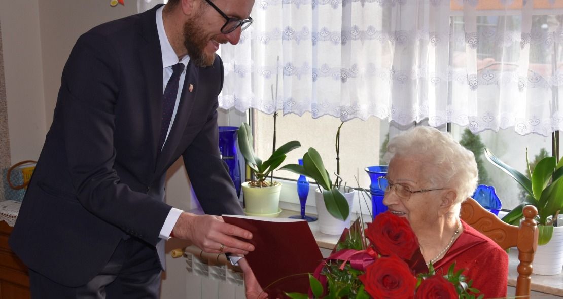 Urszula Kobylczak z Rogoźna skończyła 101 lat. Burmistrz Rogoźna Łukasz Zaranek złożył jej najserdeczniejsze życzenia.