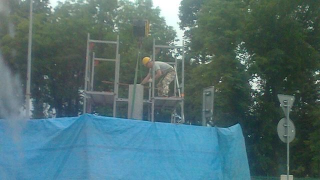 Trwa montaż figury Matki Bożej na skwerze przy rondzie Melzera. To miejsce potocznie przez mieszkańców Rogoźna jest nazywane "koło figury".
