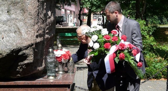 W parku 3. maja w Obornikach pod pomnikiem Bohaterów II Wojny Światowej kwiaty złożyli: Wicestarosta Andrzej Okpisz, Zastępca Burmistrza Piotr Woszczyk, Radny Marek Lemański oraz Klemens Śliwiński.