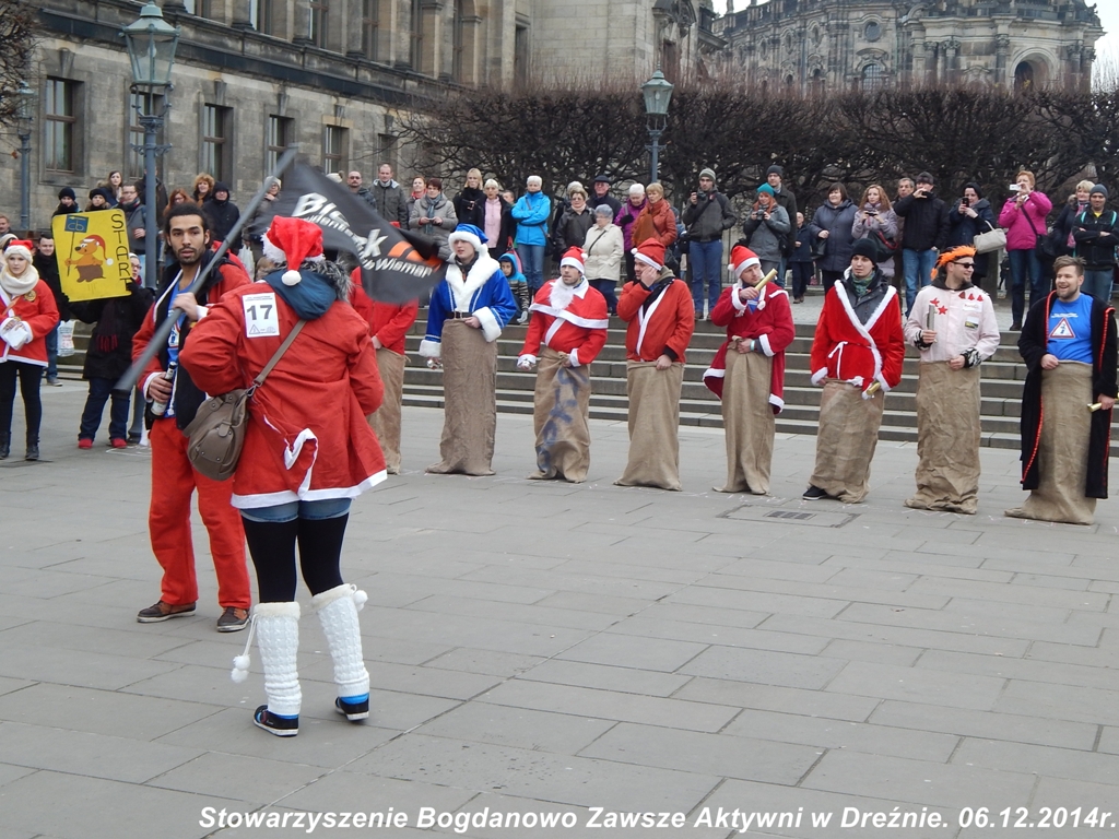 O godzinie 16:00 spotkano się przy pomniku Marcina Lutra i razem zwiedzono ewangelicki kościół Frauenkirche i katolicką katedrę Hofkirche o wspaniałym rokokowym wystroju. Obejrzano również ołtarz poświęcony pamięci Salezjańskiej Piątki - młodych ludzi , którzy oddali życie za Ojczyznę. Nie zabrakło również pamiątkowych wspólnych zdjęc na dziedzińcu Zamku i obejrzenia fasady zamkowej z wizerunkami książąt saskich i królów Polski Augusta II Mocnego i Augusta III. Wielkie wrażenie na uczestnikach wycieczki zrobił kompleks pałacowy Zwinger. W świątecznej dekoracji podziwiano gmachy Semperoper , Landtagu i hotelu przebudowanego z dawnego spichlerza. Cały czas towarzyszył grupie dr Wolfgang Nicht, któremu serdecznie głośnymi brawami podziękowano i przekazano kalendarze przedstawiające grafiki zabytków Obornik oraz podarowano regionalne produkty życząc udanego pełnego sukcesów i dużo zdrowia w roku 2015 oraz radosnych, spokojnych Świąt Bożego Narodzenia.