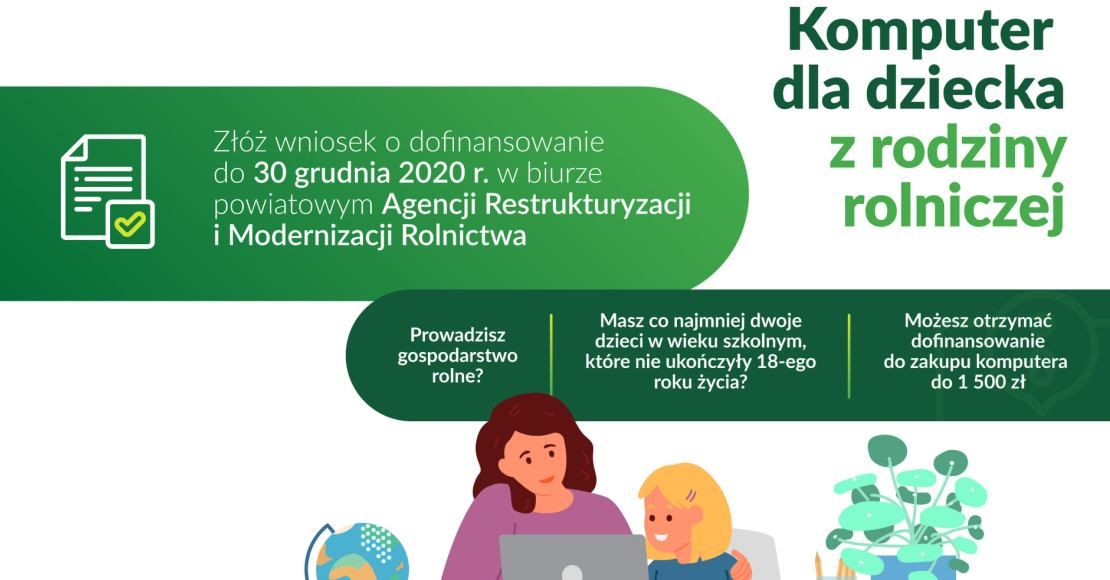 Pieniądze na zakup komputera dla dziecka z rodziny rolniczej