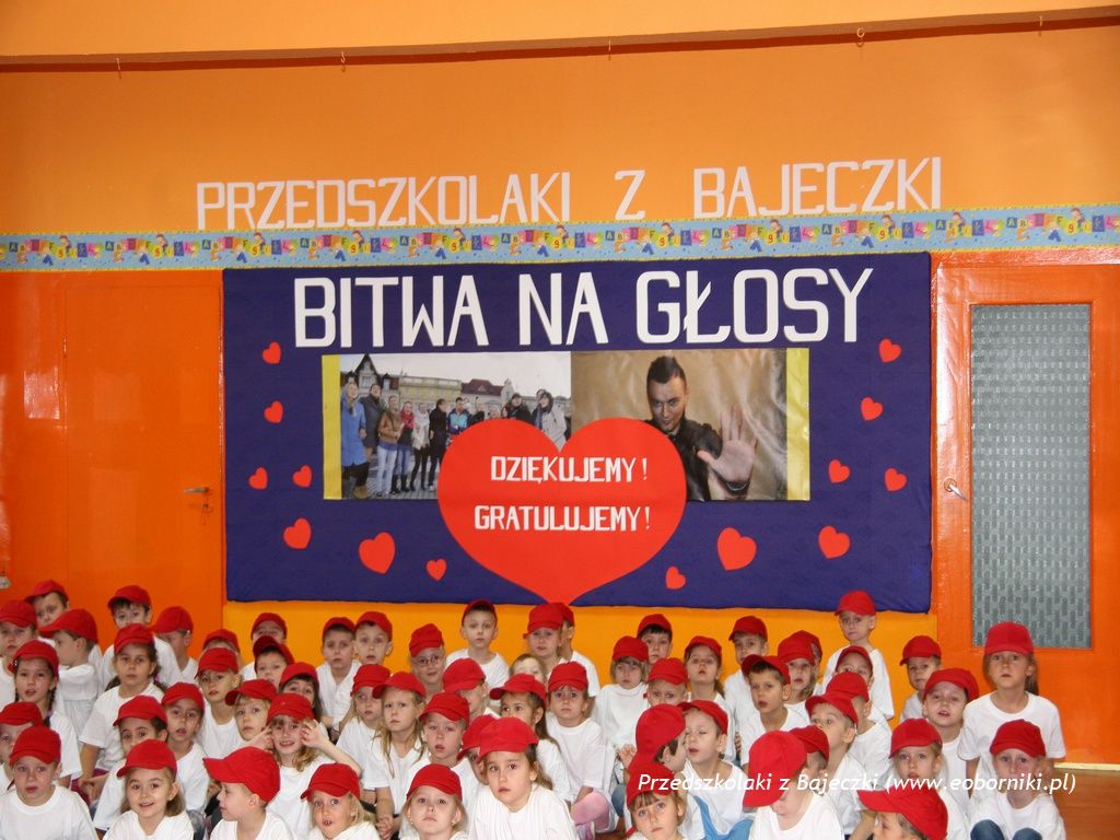 Blisko 80 dzieci zaśpiewało utwór "Czyste Szaleństwo" Libera i grupy "InoRos" wykonując przy tym specjalną choreografię. Serdeczne podziękowania w imieniu wszystkich złożyła szóstka przedszkolaków z grupy "Zajączki": Ola, Kornelia, Miłka, Marysia, Tobiasz i Nikodem.