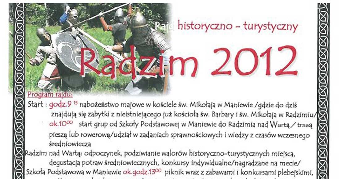 26 maja odbędzie się Rajd Radzim 2012. Rozpocznie się on o godzinie 9:00 od nabożeństwa majowego w kościele św. Mikołaja w Maniewie