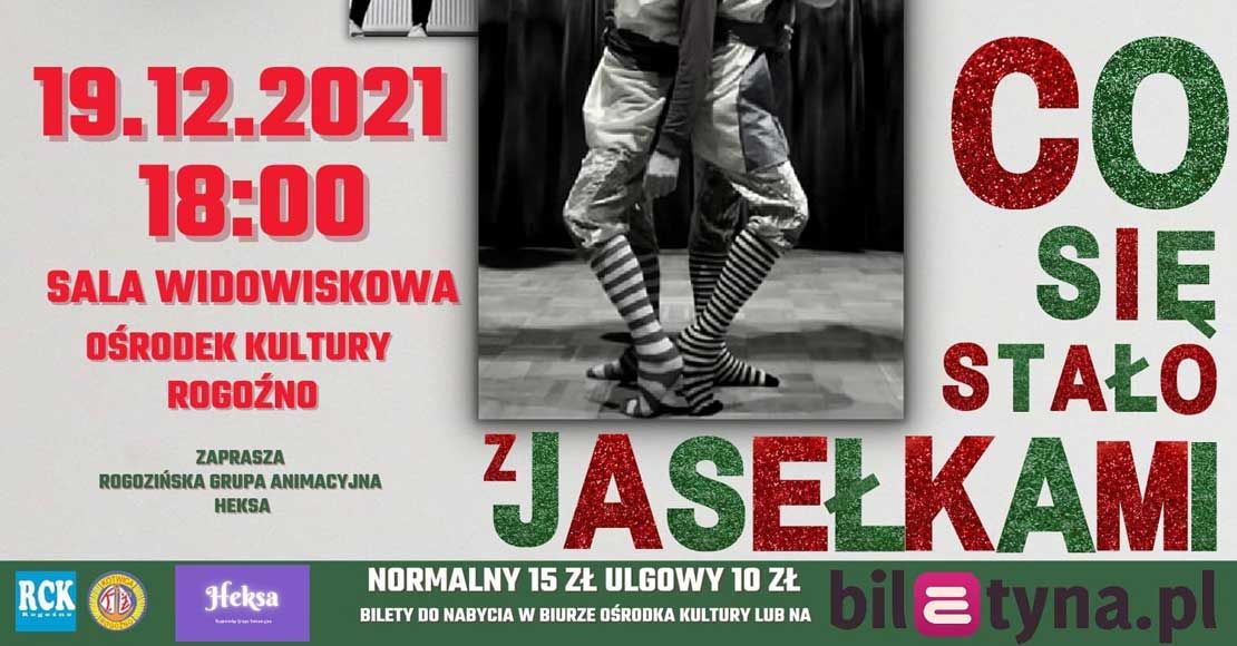 Zapraszamy do Rogozińskiego Ośrodka Kultury na komedię "Co się stało z Jasełkami", którą przedstawią członkowie RGA Heksa oraz KŻ Kotwica.