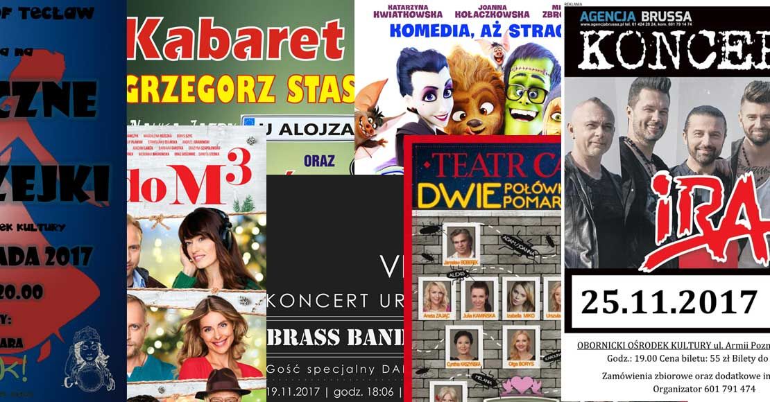Zapowiedzi organizowanych w listopdadzie 2017 atrakcji kulturalnych w Obornickim Ośrodku Kultury.