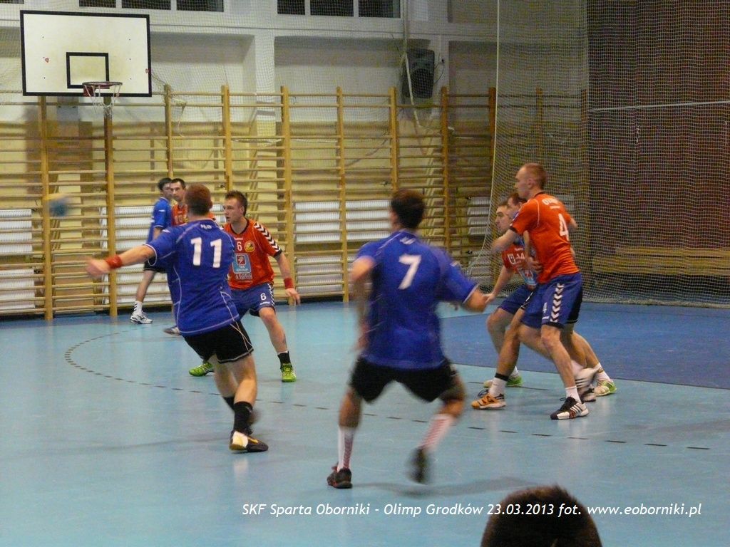 Druga odsłona to stopniowe powiększanie przewagi przez gości. Gospodarze znacznie częściej spędzali czas na ławce kar, co ułatwiało grę zespołowi Olimpu. Nie potrafił się też odnaleźć w tej części gry Błażej Kwiatkowski, który zdobył w pierwszej części aż 6 bramek. Po słabej grze oborniczanie ulegli ostatecznie Olimpowi Grodków 22:32.