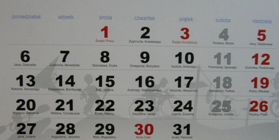 W Wielkanoc oczywiście zyskujemy tylko wolny poniedziałek (01.04.2013). Za to już szczodrze nas wynagrodzi maj - szykuje się nam długi weekend. Jeśli weźmiemy urlop na 29 i 30 kwietnia oraz na 2 maja będziemy mieć 9 dni wolnego! Ale ten miesiąc ma jeszcze jedną dla nas miłą niespodziankę. 30 maja wypada Boże Ciało. Biorąc urlop na 31 dzień tego miesiąca do naszej dyspozycji mamy 4 dni - od 30 maja do 2 czerwca. Oczywiście dobierając jeszcze 3 dni wolnego na 27-29 maja mamy ponownie 9 dni.