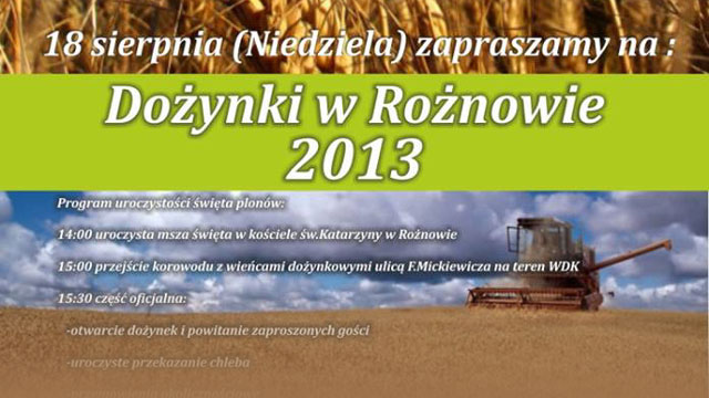 W Rożnowie już 18 sierpnia odbędą się dożynki. Rada Solecka zaprasza wszystkich na uroczystości. Początek obchodów o godzinie 14:00.