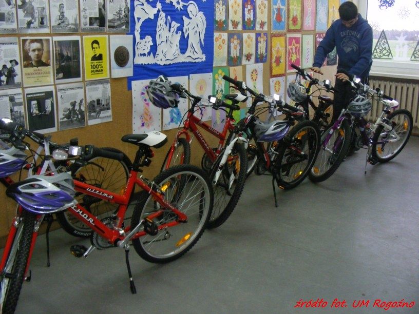 Przed świętami, a dokładnie 21 grudnia 2011r. WORD zrobił prezent ofiarowując naszej szkole sześć rowerów łącznie z kaskami. Otrzymaliśmy 4 rowery TREK MT TRACK 220 oraz 2 rowery AUT.ULTIMA. Wartość tego prezentu to kwota 5.676 zł. Przedświąteczna przesyłka sprawiła dzieciom dużo radości oraz wywołała we wszystkich entuzjazm. Rowery te wykorzystamy do praktycznej jazdy przygotowując się do karty rowerowej oraz do Turnieju Ruchu Drogowego (BRD), w którym zajmujemy czołowe miejsca.