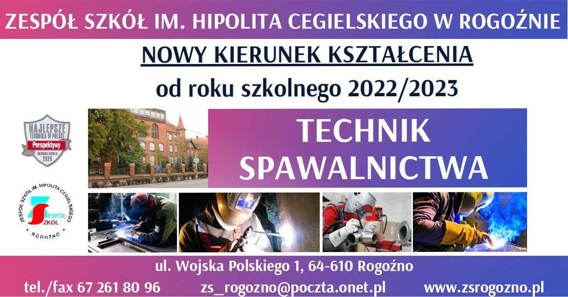 Wychodząc naprzeciw oczekiwaniom lokalnych pracodawców Zespół Szkół im. Hipolita Cegielskiego w Rogoźnie utworzył, nowy kierunek kształcenia -technik spawalnictwa. Jest to jedyna szkoła w regionie, która będzie kształcić w tym zawodzie.