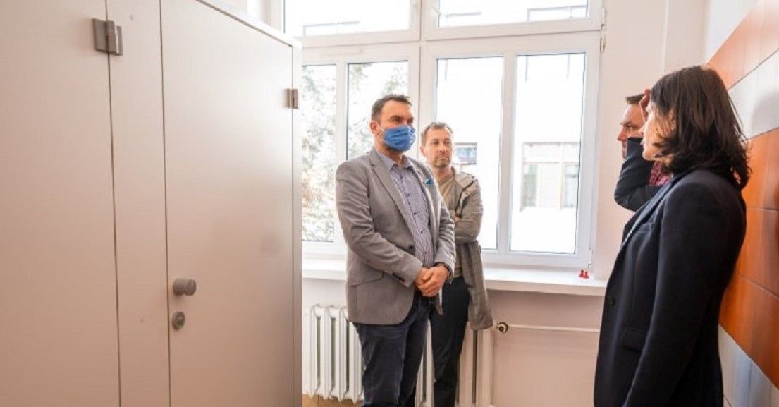 W środę, 23 marca odbył się odbiór kolejnych dwóch wyremontowanych toalet. W ramach prac wymieniono instalację wodno-kanalizacyjną, elektryczną, wymieniono płytki podłogowe i ścienne, wykonano „biały montaż”, wymieniono też stolarkę drzwiową oraz tynkowanie i malowanie ścian.