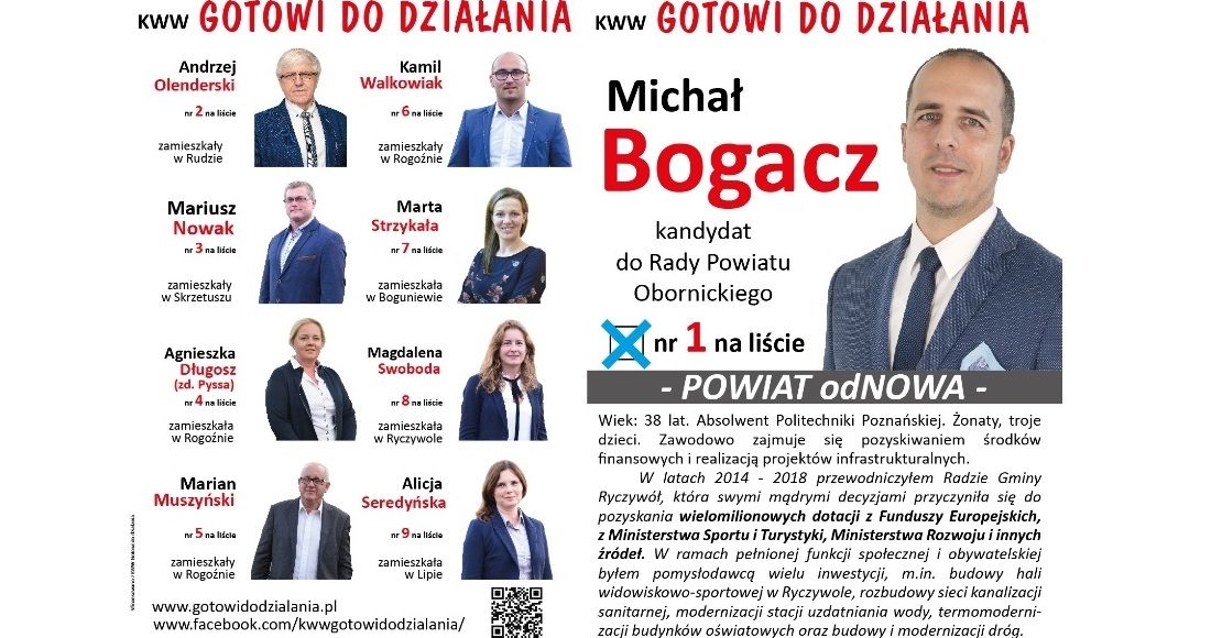 Michał Bogacz to lider Komitetu Wyborczego Wyborców Gotowi Do Działania. Kto jeszcze znajduje się na tej liście?